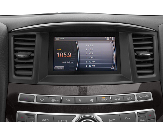 - Radio: AM/FM/CD/MP3 Audio System -inc: 6-speakers, Radio Data System (RDS), speed-sensitive volume control, Bluetooth Hands-free phone system, illuminated steering wheel-mounted audio controls, USB connection port for iPod interface and other compatible devices, XM Satellite radio, auxiliary audio/video input jacks in front center console and INFINITI controller for comfort and convenience features