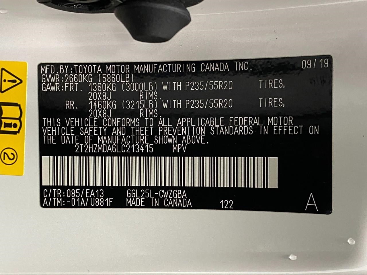 - Rear Tire Size: P235/55VR20